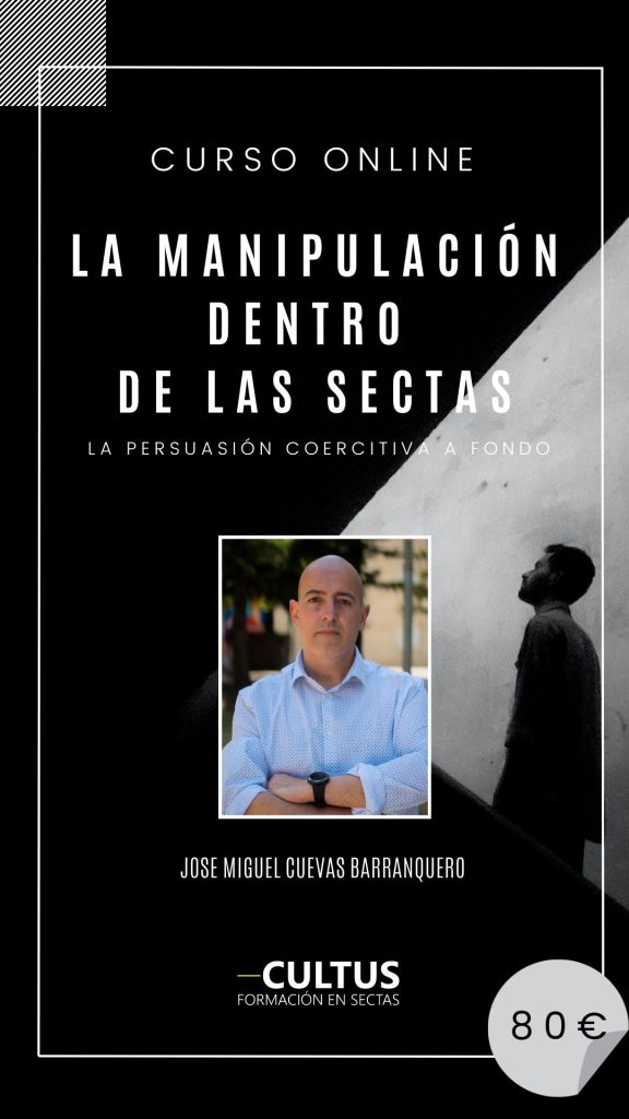 La persuasión coercitiva es el conjunto de técnicas de manipulación utilizadas por los líderes y grupos para lograr la captación y luego sometimiento de una persona. En este curso se exploran 16 técnicas de la categorización del Doctor en Psicología Jose Miguel Cuevas Barranquero, profesional especialista en la atención de víctimas de sectas y orientación a familiares con más de veinte años de experiencia. El curso se conforma de cuatro horas de vídeo (Grabado, no directo), con numerosos ejemplos de víctimas y testimonios exclusivos para Cultus Formación. En él se incluyen diferentes anexos en pdf relacionados con la temática.